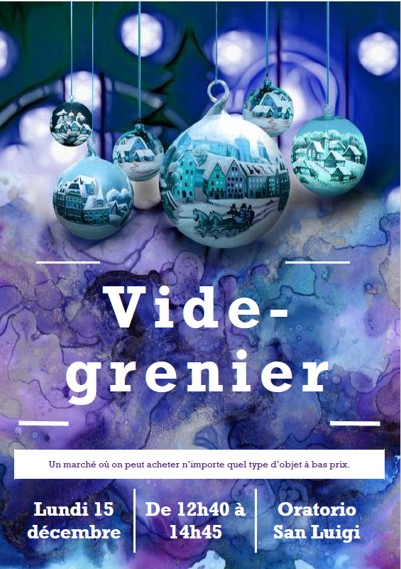 La Scuola Media San Luigi, anche quest’anno, si prepara a celebrare il Natale con un evento speciale: il Mercatino di Natale del San Luigi, meglio conosciuto come vide-grenier!